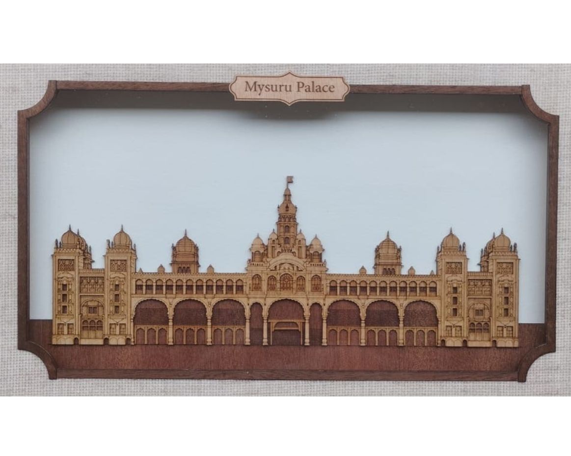 Bring home the grandeur of Karnataka’s royal heritage with this Lazer crafted veneer artwork of the iconic Mysuru Palace. Expertly designed using natural wood veneers, this piece captures the majestic domes, arches, and towers of the Amba Vilas Palace in stunning detail. The intricate craftsmanship reflects the elegance of Indo-Saracenic architecture, making it a timeless addition to any space.